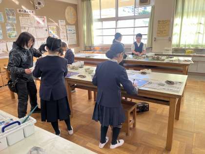 図工の時間には、「モチモチの木」を題材に版画に取り組んでいます。