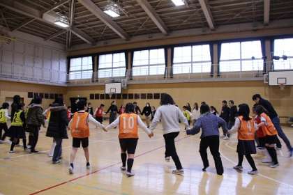 おうちの人も一緒に「5輪」になって、みんなで体を動かしたり、5年生のふりかえりをしたりしました。