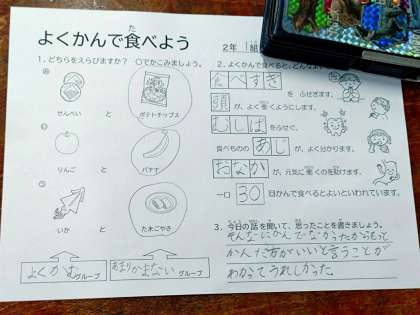 2年生は「よくかんで食べる」ととても良いことがあると教えていただきました。