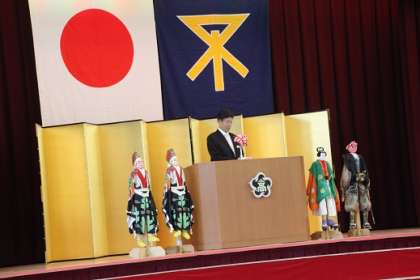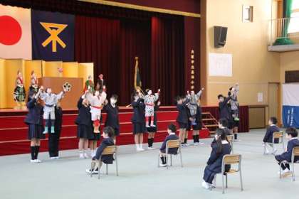 6年生と2年生が、演技や言葉で1年生の入学をお祝いしました。