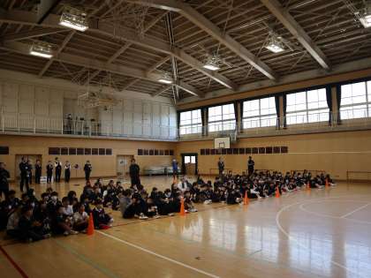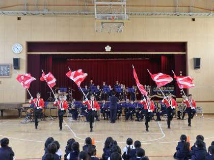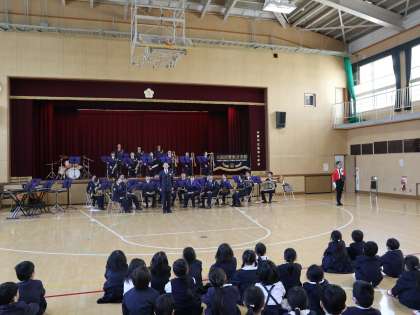 次に、大阪府警察音楽隊による演奏がありました。子どもたちにも、人気のディズニーの曲や、ミセスグリーンアップルの曲のメドレー、そして、最後に高津小学校の校歌を演奏していただきました。とても楽しい時間になりました。