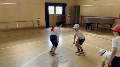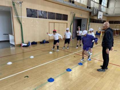 4年生の体育「体ほぐしの運動」の様子です。小グループに分かれて、友達と協力しながら運動に取り組む姿が見られました。心も体もほぐれて、子どもたちとても楽しそうです。