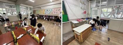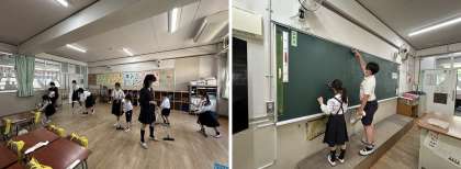 6年生にはたくさんのことを教えてもらいました。今日は6年生にサポートしてもらう最後の日です。おかげで、給食も掃除も、日に日に自分たちできることが増えました。週明けからは、自分たちでがんばります。