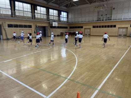 4年生が体育の授業でシャトルランに取り組みました。