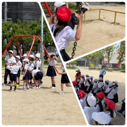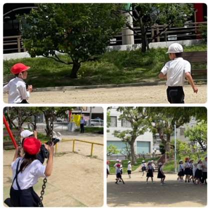 1,2年で校区にある高津公園に行きました。途中で高津交番の場所も確認しました。高津公園では、1年と2年で楽しく活動することができました。