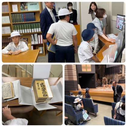 今日は、黒門市場から国立文楽劇場など、地域にある施設や道頓堀につながる橋の由来についても学習しました。特に国立文楽劇場では、基本的なお話から、3階の図書館も見学させていただき、貴重な書物を見ることもできました。