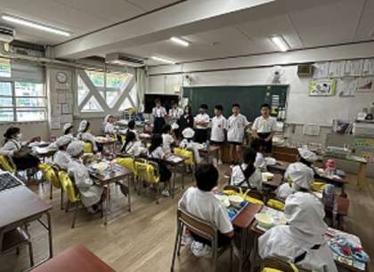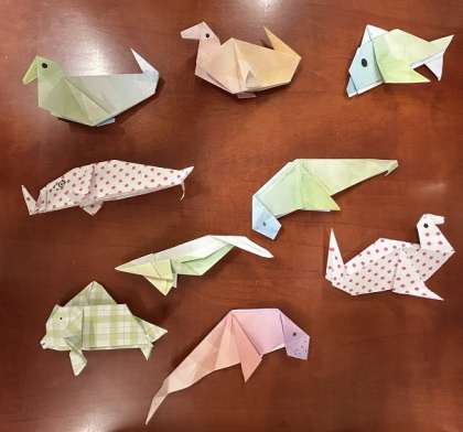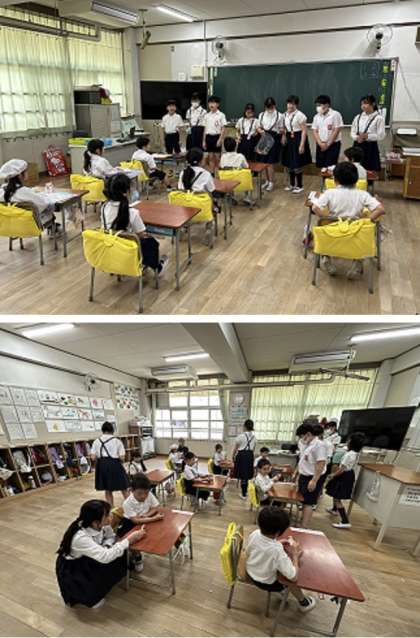 6年生が「修学旅行から帰ってきたよ。」と1・2年生の教室へ来てくれました。お天気が心配された2日間でしたが、「大きなてるてるぼうずのおかげで、楽しく活動ができたよ。ありがとう!」と、鳥羽水族館の生き物たちをつくってプレゼントしてくれました。