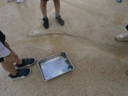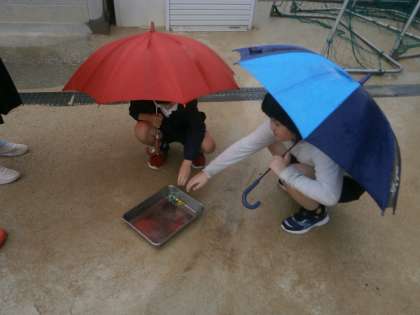 雨が降った日水の流れはどのようになるのかの観察を行いました。