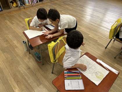いいお天気ですが気温が高いので、教室で過ごしています。