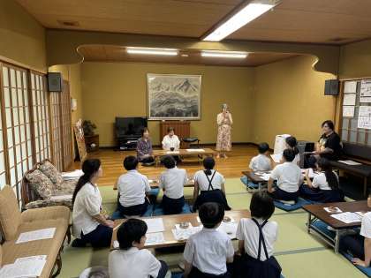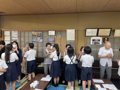 本日は、豊寿会の皆さまに「生活におけるマナー」について教えていただきました。お茶の出し方やお箸の正しい使い方など、日常生活に役立つ大切なマナーをたくさん学ぶことができました。最後には「茶摘み」の歌を一緒に歌い、和やかな雰囲気の中で交流を深めることができました。