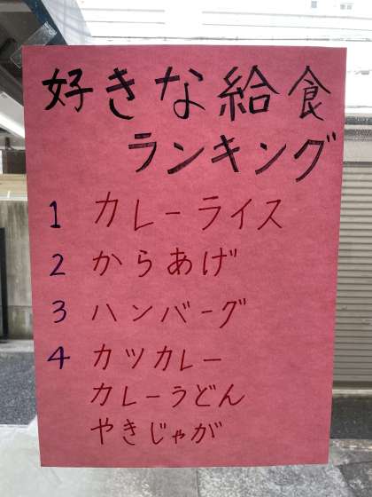 保健給食委員会の取組「すきな給食ランキング」の結果が発表されました。一位は、カレーライスでした。やっぱりみんなカレーライスが大好きなようです。