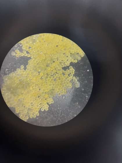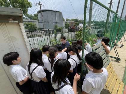 5年生は理科の学習で、学校の学習園で育てているおもちゃかぼちゃの花粉を顕微鏡を使って観察しました。実際に自分の目で見て、身近な植物のつくりに興味をもつきっかけとなりました。