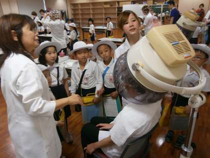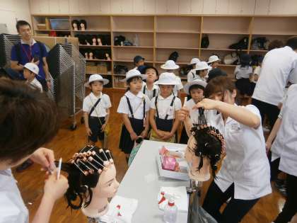 高津理容美容専門学校へ行って、髪を切ったり、パーマをしたりする練習の様子を見てきました。