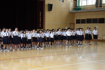本校では、表現する(伝え合う・発表する)良さを感じるために全校音読集会をしています。