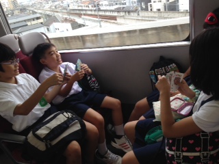 6年生全員参加で元気に出発しました。お天気も回復傾向で一安心!電車の中から、もうテンションが上がっています。