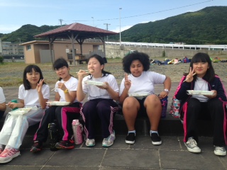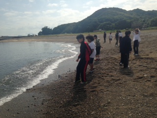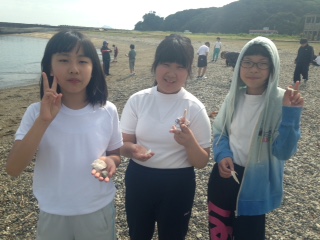 釣りのあと、朝ごはんを食べ、浜辺で貝ひろいなどして自然を満喫しました。