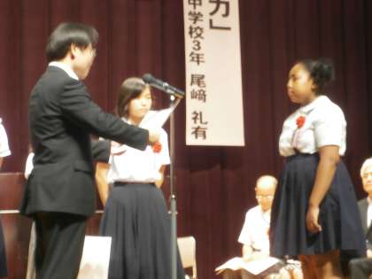 平成28年7月27日(水)第66回「社会を明るくする運動」表彰式がありました。高津小学校からは3名が選ばれ、6年生が代表受領しました。