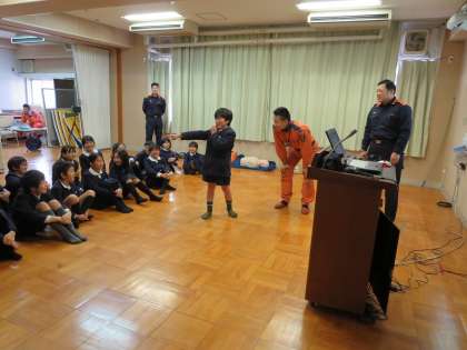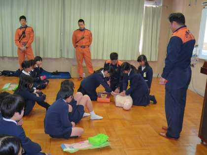 平成29年1月19日(木)学習参観5年「体育(保健)・けがの防止」で、救命の仕方を教わり、実際に体験して学びました。