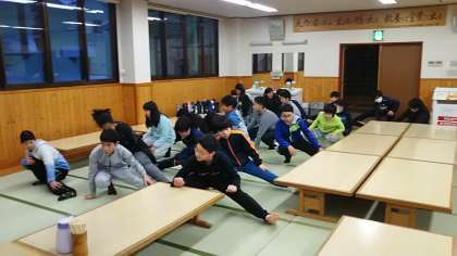朝会で体操した後、朝ご飯!みんな、しっかり食べました。