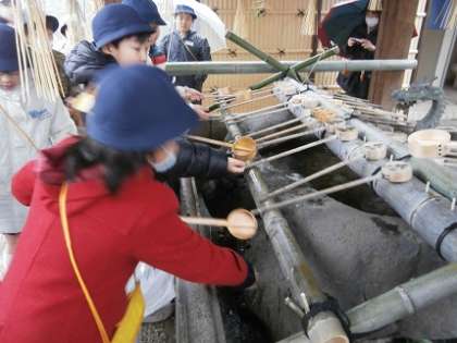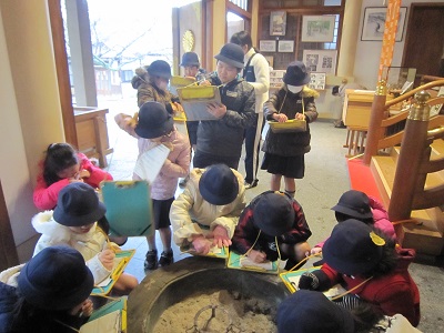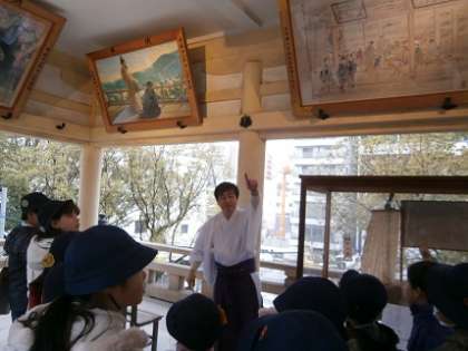平成29年2月9日(木)の高津宮見学では、宮司さんから昔の道具やくらしについてお話していただきました。