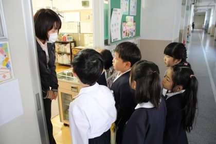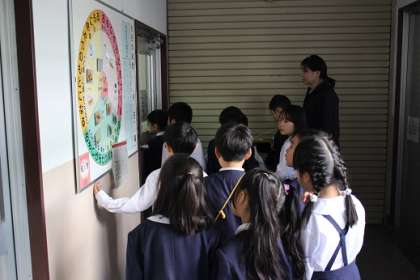 子どもたちは静かに、約束を守って、校内を回ることができました。