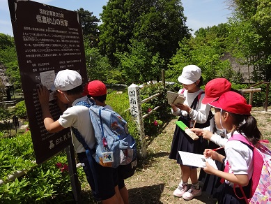 晴天にも恵まれに3・4年生が服部緑地(日本民家集落博物館)に行ってきました。