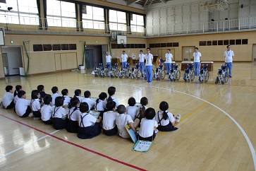4年「車いす体験学習」がありました。児童は、講師の方々の説明を熱心に聞き入り、意欲的に学習しました。車いすの台数が多く、どの子もたっぷりと活動できました。