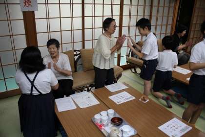 5年生は基礎的マナー(礼儀作法)について、実演や体験を交えながら3つのことを中心に教えていた