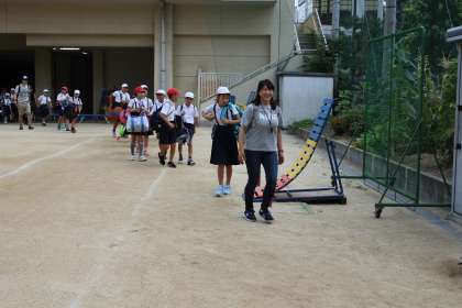 8時頃、保護者や職員に見送られ学校を出発しました。