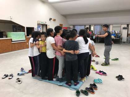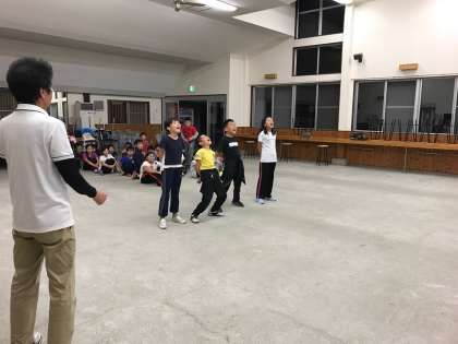 雨天でナイトウォークが中止になったため、室内でゲームをして楽しいひと時を過ごしました。