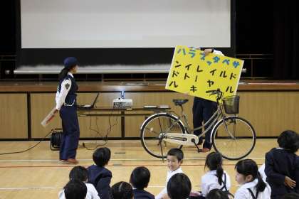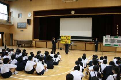 南警察による交通安全教室が実施されました。低学年は安全な歩行や自転車の乗り方、高学年は自転車の点検方法や安全な乗り方について教わりました。日頃を振り返る良い機会となり、交通安全への意識を高めることができました。
