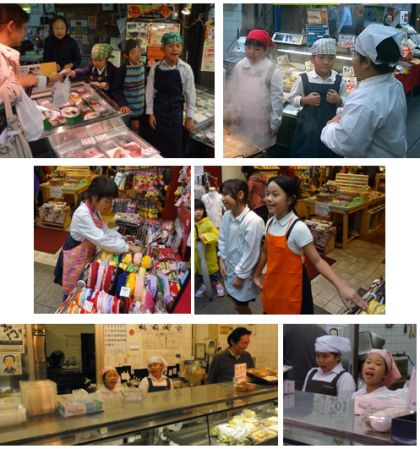 平成29年10月19日(木)3年生は2〜3人のグループになって、黒門市場のいろいろなお店でお手伝いをさせていただきました。子どもたちは「いらっしゃいませ。」や「ありがとうございました。」など、来たお客さんに声をかけることができていました。このような体験を通して仕事の内容や接客の仕方などを知ることができ、職業観や勤労観を育てるきっかけをつくれたのではないかと感じます。