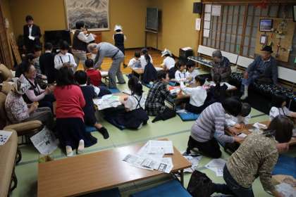 本校の特色ある教育として「ふれ合い学習」があります。この学習は地域の人たちとのふれあいを通して、「人との関わりの大切さや地域のよさ」を学んでいます。