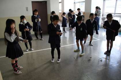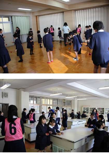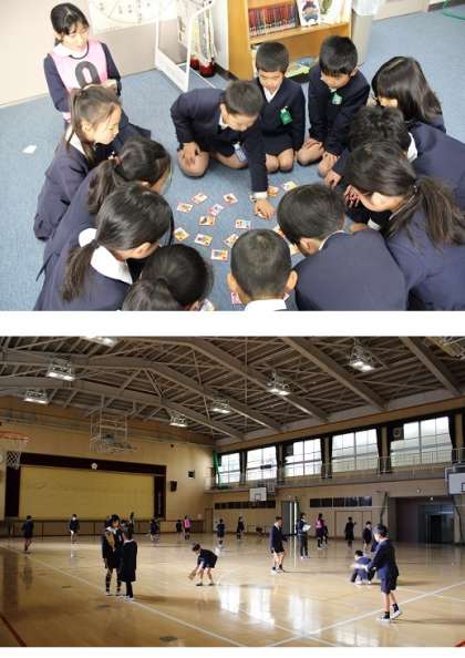 「カルタ」「はねつき」「けんだま」「お手玉」「こままわし」など、お正月に行う日本の遊びをしました。たてわり班ごとに楽しく遊ぶことで、日本文化に親しみ、仲を深めることができました。