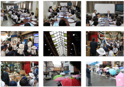 3年生が社会科の学習で黒門市場見学を行いました。まず、黒門市場商店街振興組合理事長・山本様、そして、三都屋の店主 北岡様からのお話を聴きました。続いて黒門市場内を案内していただきました。案内では、様々なお客さんに対応するための工夫や「なぜ、有名なのか」の黒門市場の特徴、「どんなふうにしてできたのか」等の歴史を説明していただきました。学習内容を深める見学となりました。