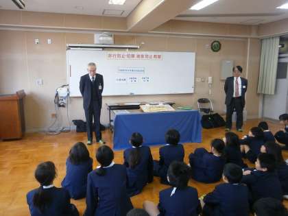 難波少年サポートセンターの方に来ていただき、社会のルールを守る大切さ、被害者や家族の気持ちを考える大切さ、さらには、非行に誘われた時に勇気をもって断ることの大切さを学びました。