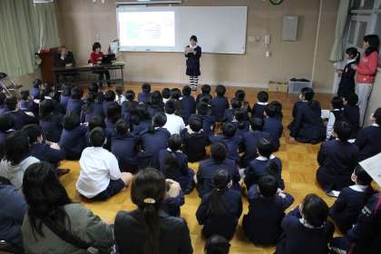 保健・給食委員会の児童による「電子メディアと健康」についてのアンケート結果の発表を聞いたり、学校医の安田光隆先生から「スマホの問題点」についてのお話を聞いたりしました。皆で健康な生活に対する意識を高めることができました。