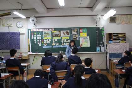 栄養指導教諭(大阪市立中央小学校)の浅利先生に来ていただき、栄養指導をしていただきました。