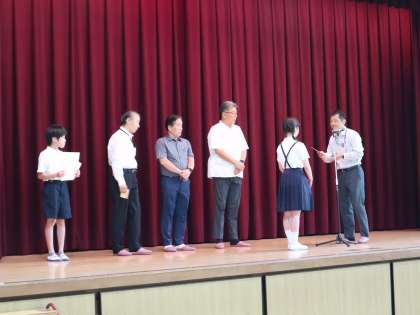 本日、5・6年生が取り組んだ「社会を明るくする運動」作文の表彰式が行われました。中央区長をはじめ中央地区保護司会の方々にもご出席いただき、子どもたちは堂々とした姿で表彰を受けました。