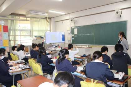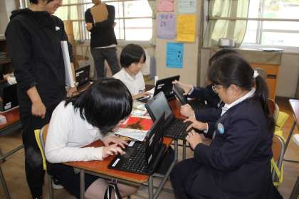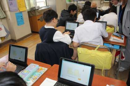 4年生の算数科「広さを表そう」の単元で研究授業がありました。パソコンを使って図形を操作したり、友達と話し合ったりしながら、考えを深めることができました。