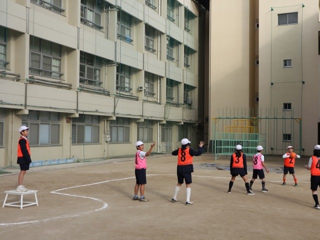 今日は、4年生の体育科「ゴール型ゲーム」の様子を紹介します。みんなで協力してボールを運ぶために、「ドリブルはなし」というルールを設定しています。このルールにより、ボールを持っている人だけでなく、持っていない人の動きも大切になります。子どもたちは声をかけ合いながら、協力して活動に取り組んでいました。