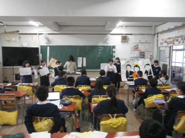 運営委員会の児童が各学年の教室に行ってあいさつ週間のお知らせをしました。