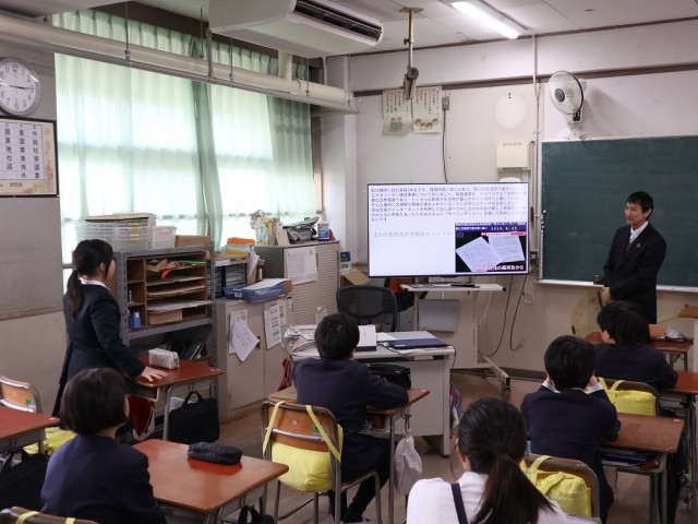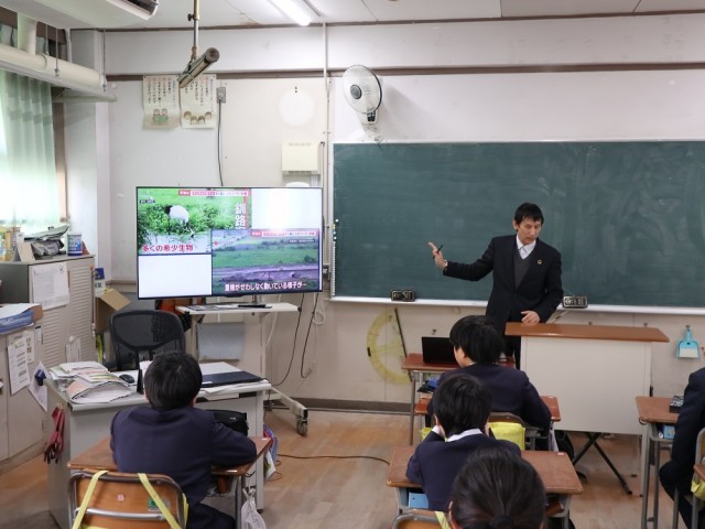 講師の先生をお招きし、SDGsについて考える授業を行いました。動画や資料を見ながら環境問題について考え、難しい内容にも真剣に取り組む姿が見られました。