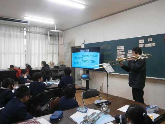 2月2日(月)【3年】音楽「金管楽器を知ろう」