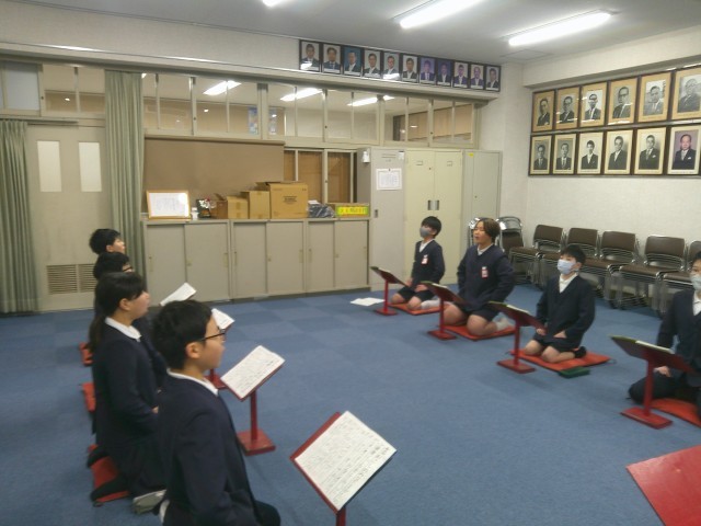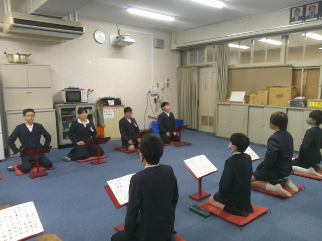 太夫は、挨拶の仕方や座るときの姿勢、二人三番叟の語る練習や腹式呼吸での発声練習などに取り組んでいます。