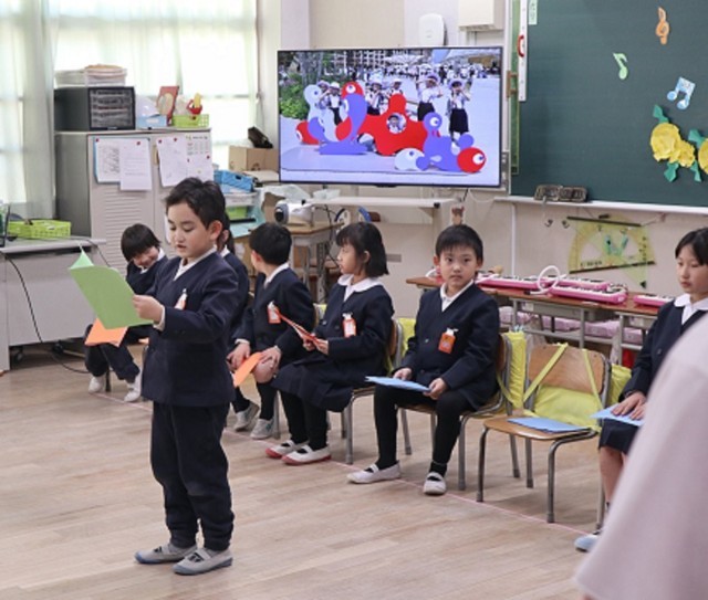 1年生は、生活科「たのしかったね1年生」の学習で、1年間を振り返って、成長したことや思い出を発表しました。