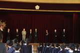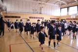 1年生と全校児童の初めての出会いの場です。 大きな拍手に迎えられ、6年生に手を引...