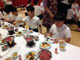 スペイン村に到着しました。記念撮影の後、昼食を食べています。