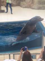 鳥羽水族館の見学をしています。 アシカショーに大喜びです。