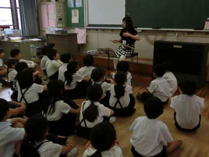 毎月1回のお話Qの会のみなさんによる「朝読み」は子どもたちの楽しみの一つでもあります。今日は、3年生が「二胡」の演奏を聞きました。
